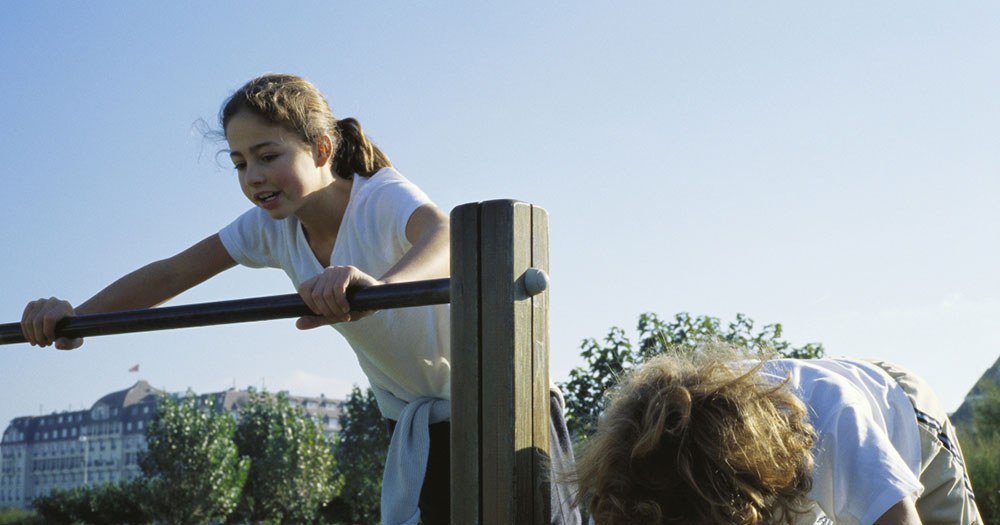 On the way to the woods, you can also use a kerb for training. Use the kerb to “walk the line”, and train your balance that way. Balance training is good for all of us, but especially for children with cerebral palsy. You can also walk the line on a log, but this is a little more difficult and your child may need support from a training partner.