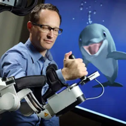 “There’s no right and wrong when you’re playing as a dolphin,” John Krakauer told The New Yorker. “You’re learning the ABCs again—the building blocks of action. You’re not thinking about your arm’s limitations. You’re learning to control a dolphin. In the process, you’re going to experiment with many movements you’d never try in conventional therapy.”
