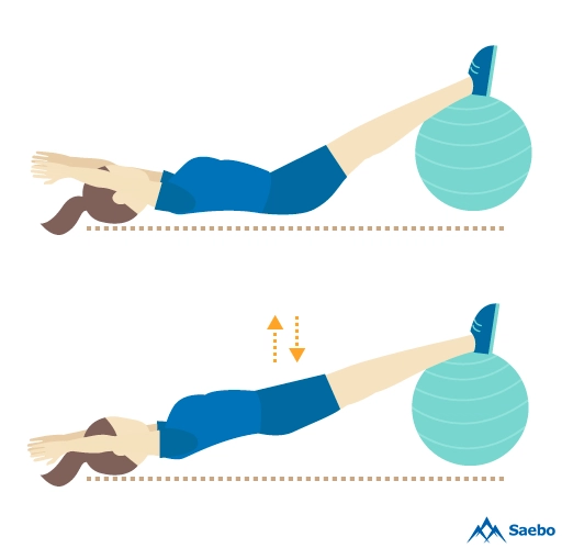 Lay on an exercise mat with your shoulders and lower back flat on the floor. Support your legs on an exercise ball. Lift your arms above your head, then use the core muscles to lift your hips off the floor until your body is in a straight line from heels to shoulders. Slowly lower back down and repeat 10-15 times.
